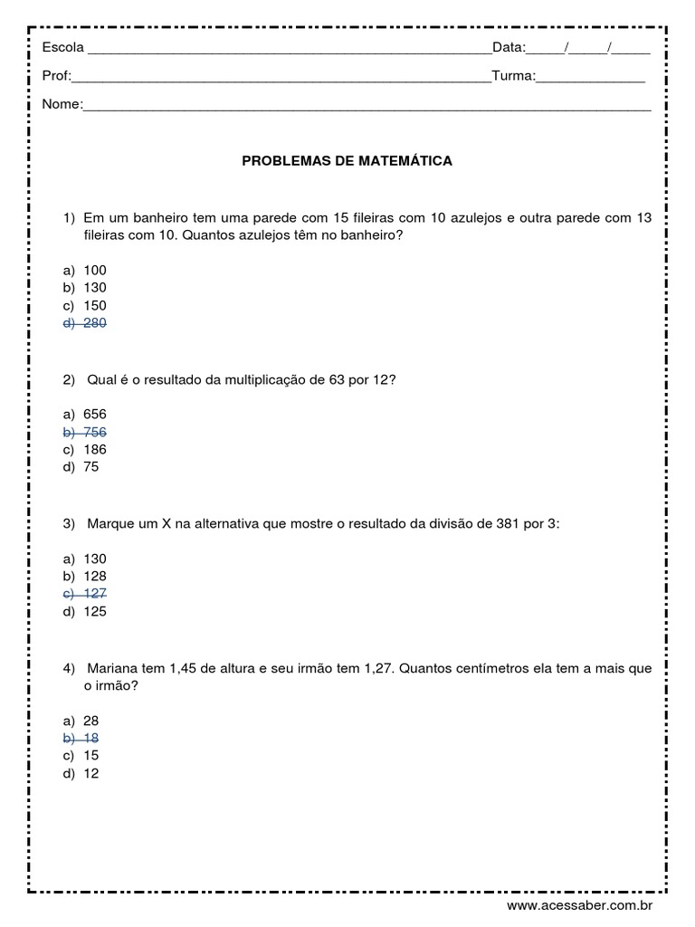 Problemas De Matematica 4 Ano Multiplicação E Divisão Com Resposta. Situações problema de multiplicação e divisão. 100%(3)100% consideraram este documento útil (3 votos).