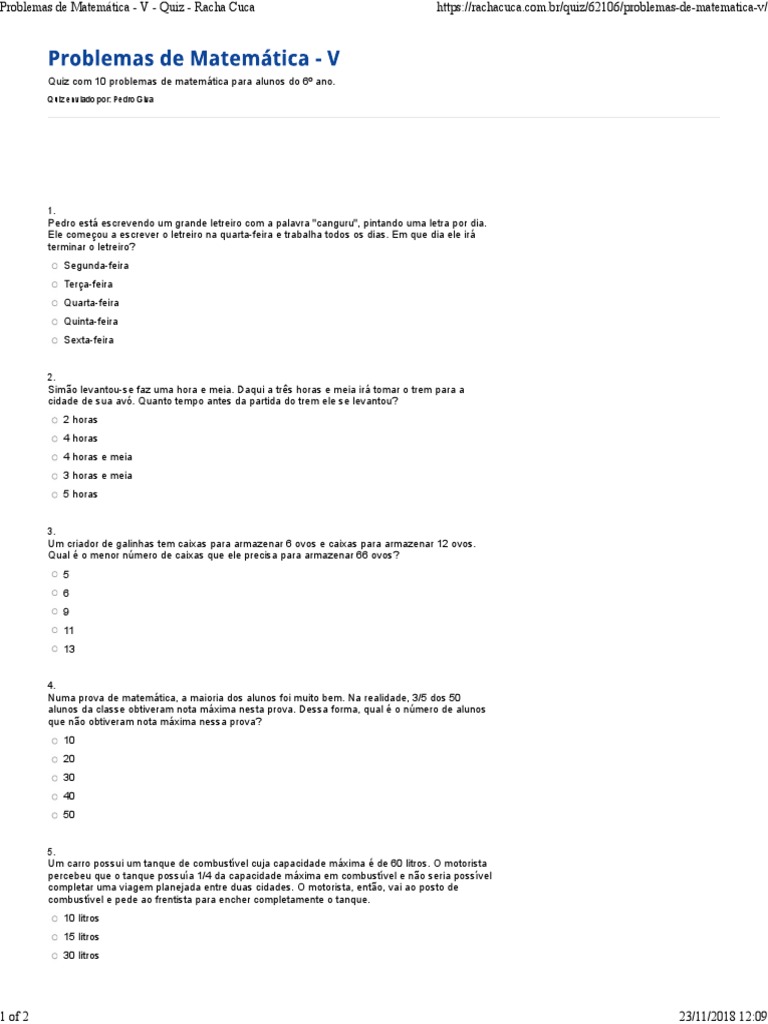 Quiz com 10 exerccios (problemas de matemtica e contas) de matemtica do ensino fundamental, mais especificamente da quinta srie. ¿cuántos lápices habrá en 61 cajas? Ento clique aqui parceiros do racha cuca ludicas jogos educativos para crianas de todas as idades. Problemas e cursos de matemática.