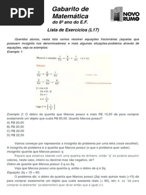 Problemas De Matemática 8 Ano Com Gabarito. 2) qual a diferença de pontos do 1° lugar para o 20° lugar. Atividades de matemática 8° ano com gabarito.