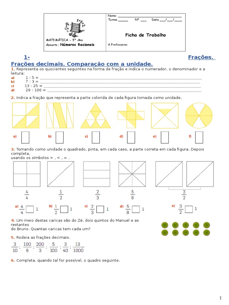 Fichas De Matemática 4O Ano Frações. Essas habilidades são organizadas em categorias, e você pode mover o mouse sobre. Simplificação de frações de termos pertencentes à tabuada do 2 e do 5 ou.