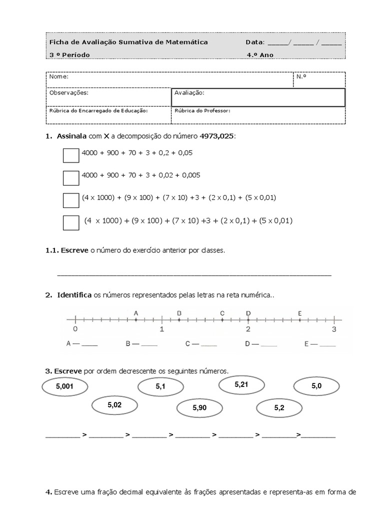 Para ver outras fichas de avaliação de matemática 6º ano, clica aqui. Partilhar no twitter partilhar no facebook partilhar no pinterest. Aqui poderá ter acesso a resumos, fichas e testes de matemática, para o 4º ano de escolaridade. Atividades de matemática do 1º ano, 2º ano, 3º ano, 4º ano e 5º ano para imprimir.