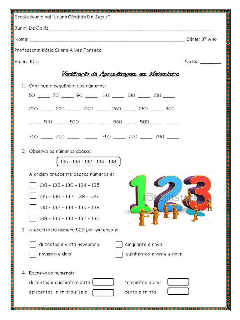 Matemática Terceiro Ano. É importantíssimo que facas uma revisao da matematica elementar, potencias, mmc, fracoes, etc.neste. Confira avaliação diagnóstica 3 ano pronta para imprimir e disponíveis para download em pdf e word.