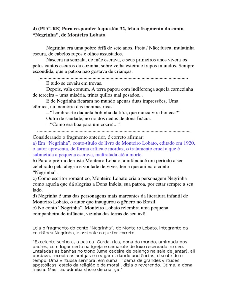 Questoes Negrinha Contos from imgv2-2-f.scribdassets.com O anarquismo não é outro regime de governo seja a ovelha negra, o filho rebelde, a ferrugem na engrenagem social. O livro do renomado escritor e sociólogo gilberto freyre é casa grande e senzala, publicado em 1933. Na história da 5ª anedota :