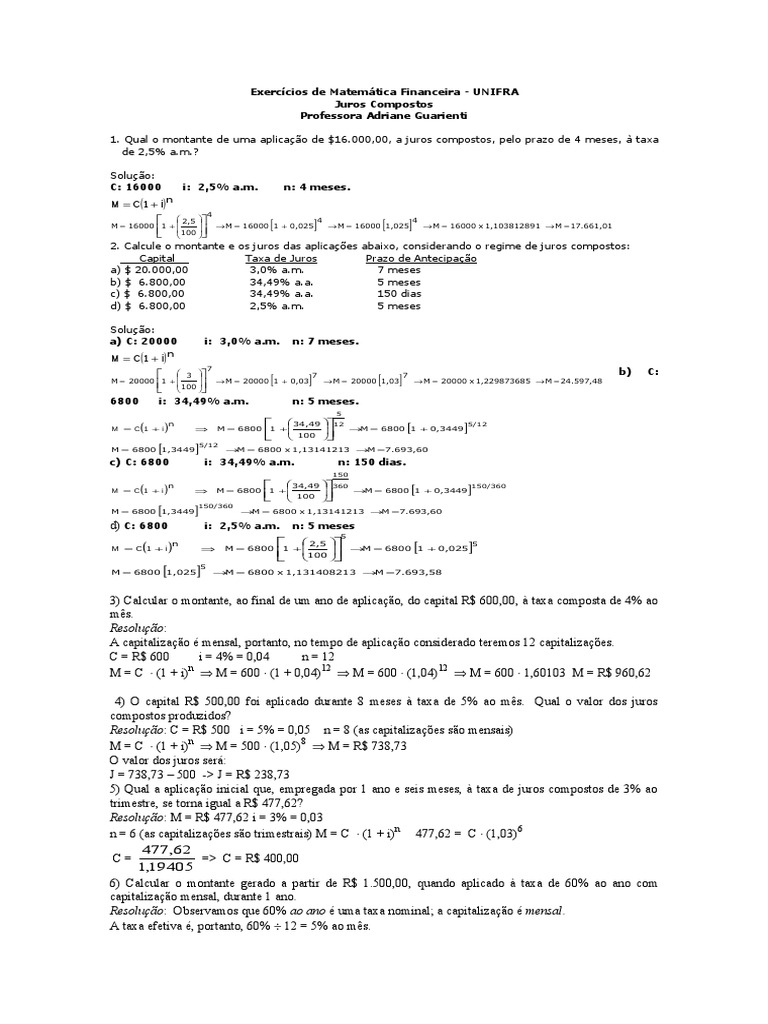 Juros Compostos Formula Como Calcular Exemplos Mundo Educacao from static.mundoeducacao.uol.com.br Matemática financeira, inclui juros compostos e juros simples, taxas de juros, taxas equivalentes e proporcionais, análise de investimento, descontos simples e compostos, percentuais e porcentagem e muito mais. Capital (c) c = 100.000,00. Sua utilidade se faz presente na vida humana desde que o homem percebeu a existência da relação entre o dinheiro e o tempo.