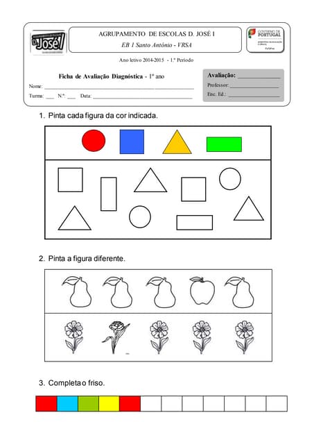 Diagnóstico De Matemática Primeiro Ano. Escola classe 10 do gama professor (a). Objetivo geral criar painel de recortes.