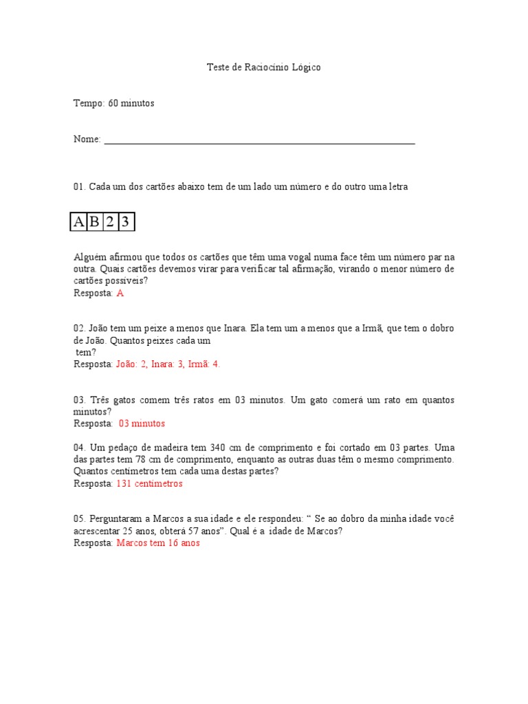 Teste De Raciocinio Logico Gabarito from imgv2-1-f.scribdassets.com Envolvem piqueniques, galinheiros e conquistas noturnas. Perguntas com respostas dissertativas e/ou. Reunimos os especialistas em matemática e raciocínio lógico para concursos conteúdo online com videoaulas e material de apoio.