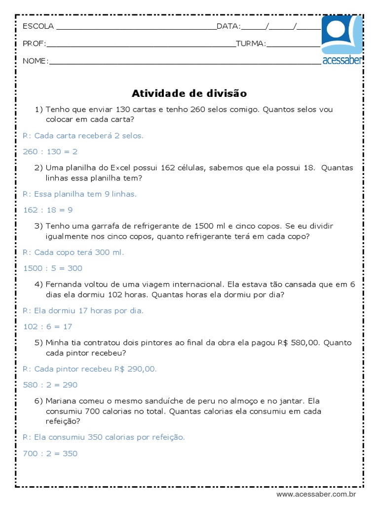 Pin Em Marcia from i.pinimg.com A princípio, a divisão por um número decimal pode parecer um pouco difícil. Exercício sobre adição, subtração, multiplicação, divisão , medidas, unidades e decimais para o 6º ano com respostas. Para acertar na hora de fazer as contas de divisão, é preciso seguir para realizar uma divisão de um número n por um número d, basta aplicar o algoritmo da divisão.
