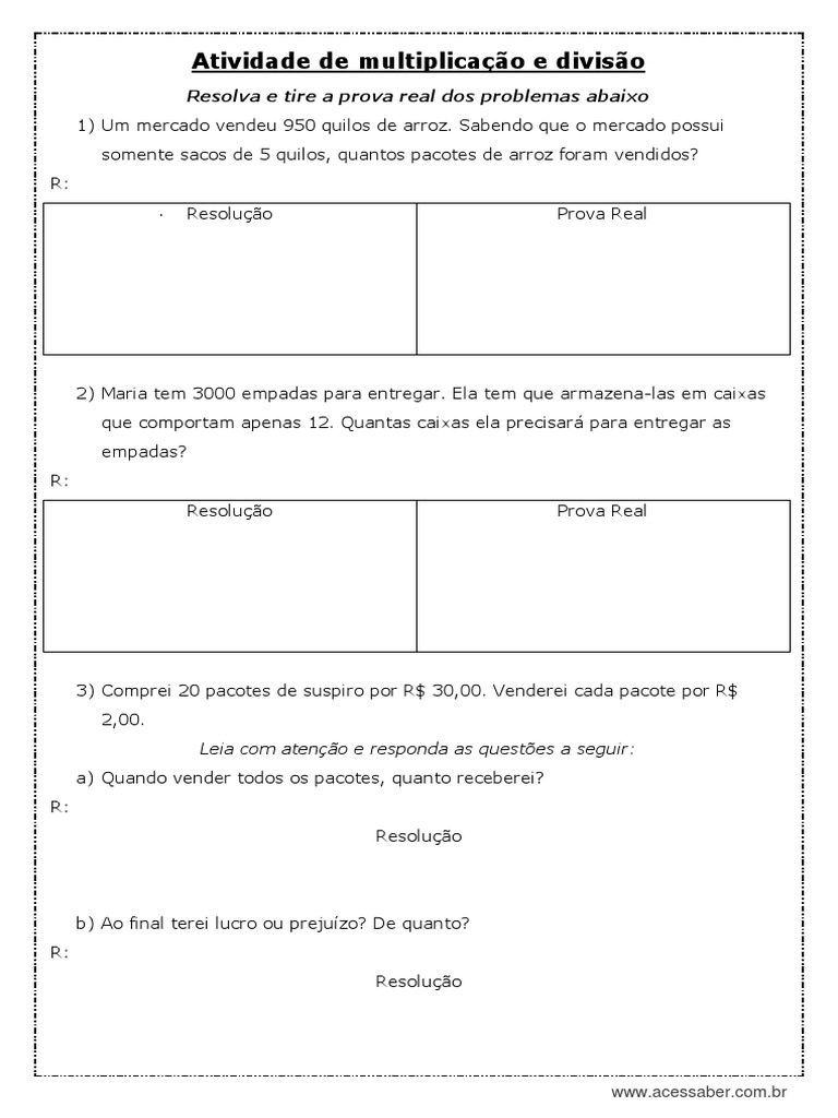 Problemas De Matematica Multiplicação E Divisão 4 Ano