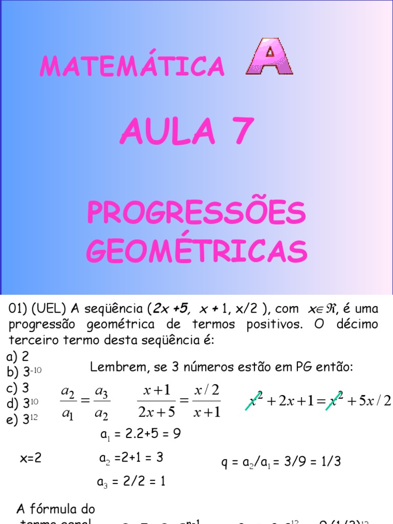 Matemática P.g. Veja o que são sequências. Pa e pg são sequências finitas ou infinitas de números que seguem uma lógica ou razão.