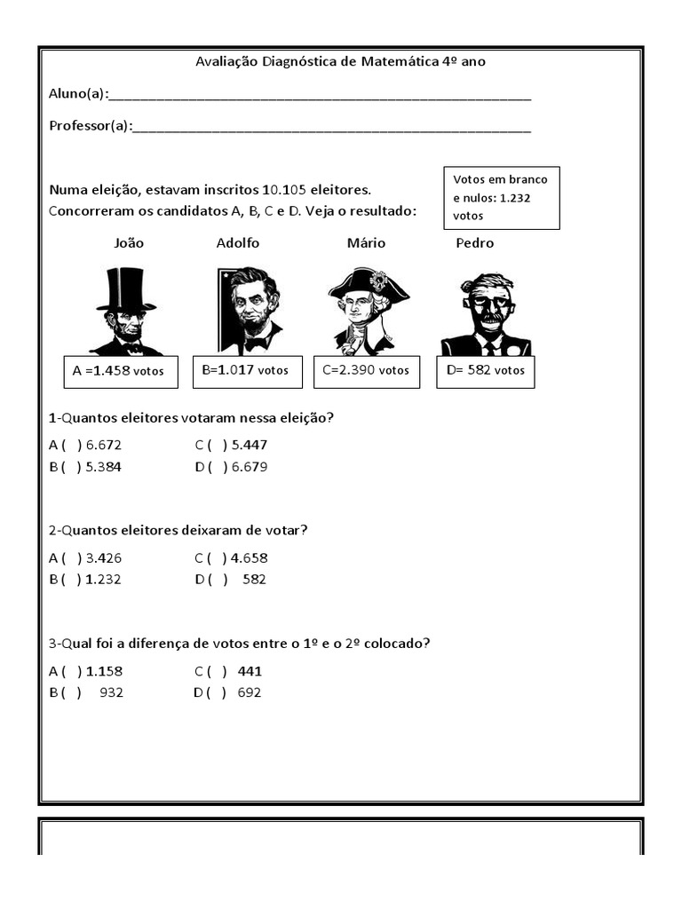 Avaliação Diagnóstica De Matemática Para O 4O Ano. 16) durante a construo de sua casa joo escolheu pisos em forma de losango para o cho da sala. Todas as avaliações diagnósticas mostradas a seguir estarão disponíveis também em pdf para download.