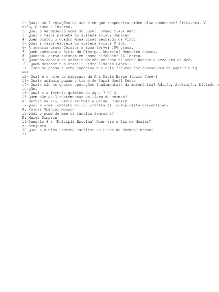 Perguntas do passa ou repassa. 21 jul 2013 2 comentários. Atividade ano novo metas perguntas e respostas atividades. E milhões de respostas a outras perguntas sem anúncios.